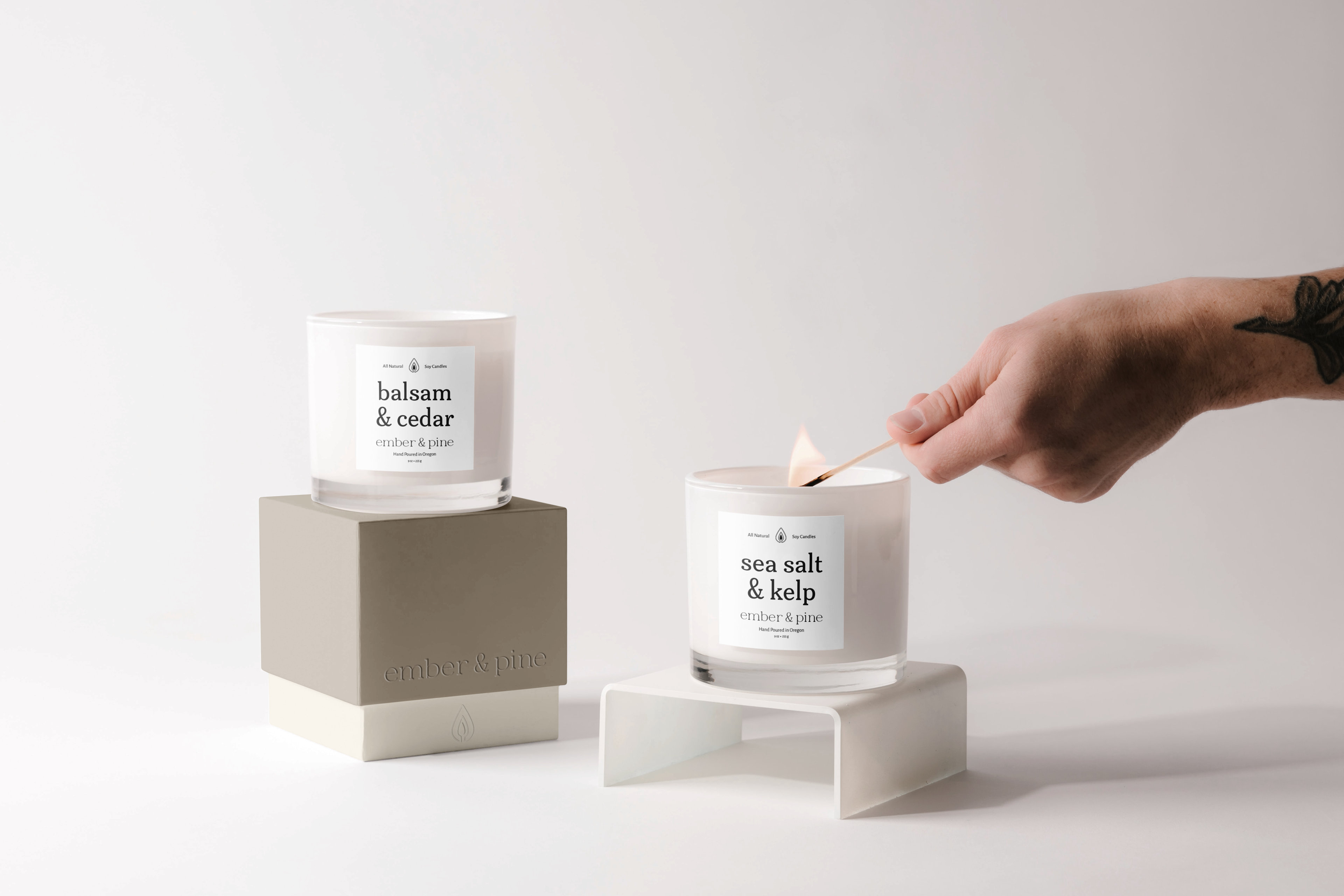 Exploration for a boutique candle brand, Ember & Pine. My goal was to create a brand that focused on mindfulness, simplicity, and nature. For this project, I focused on designing a logo suite and packaging. Brief by @theglowandgrowclub