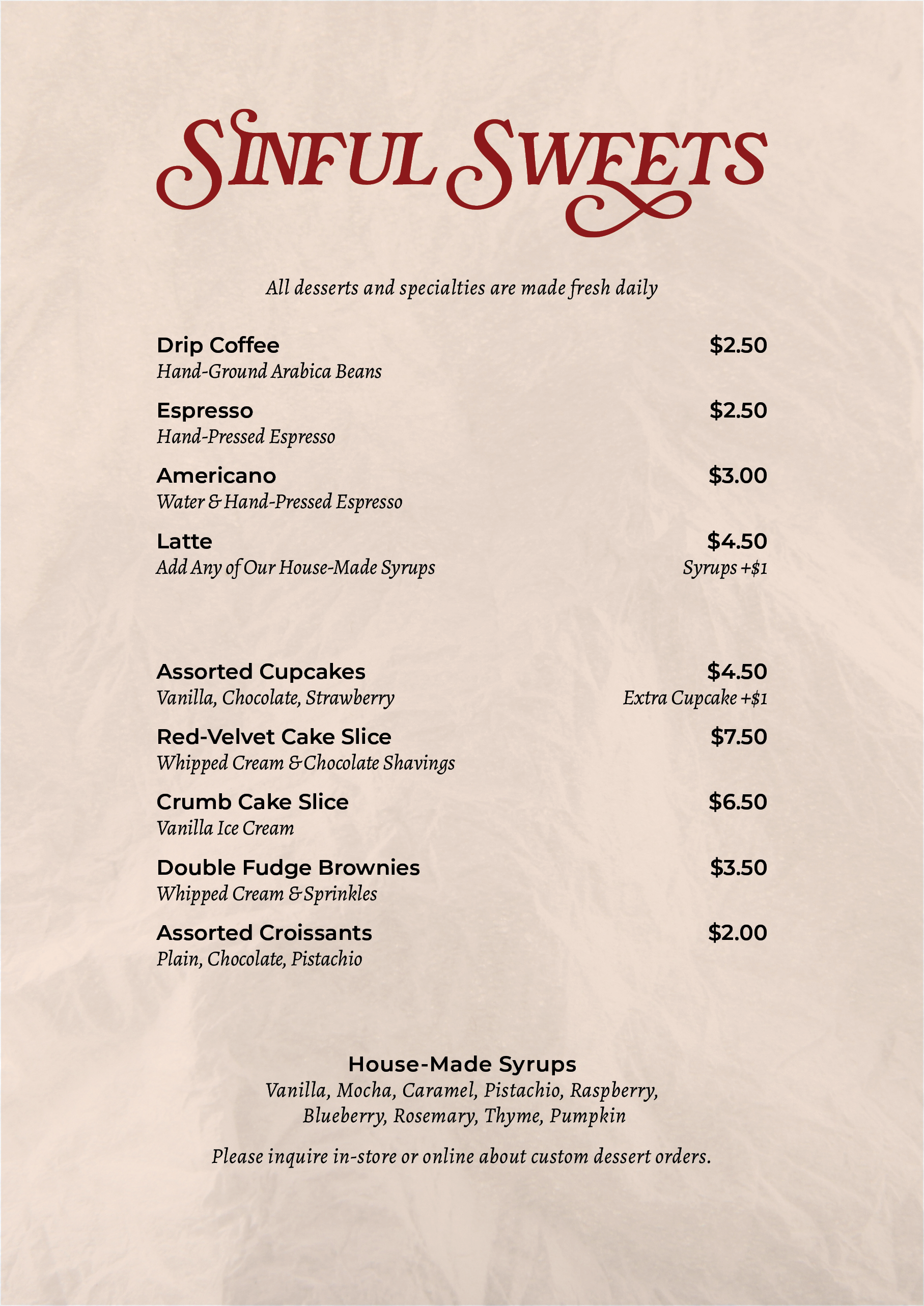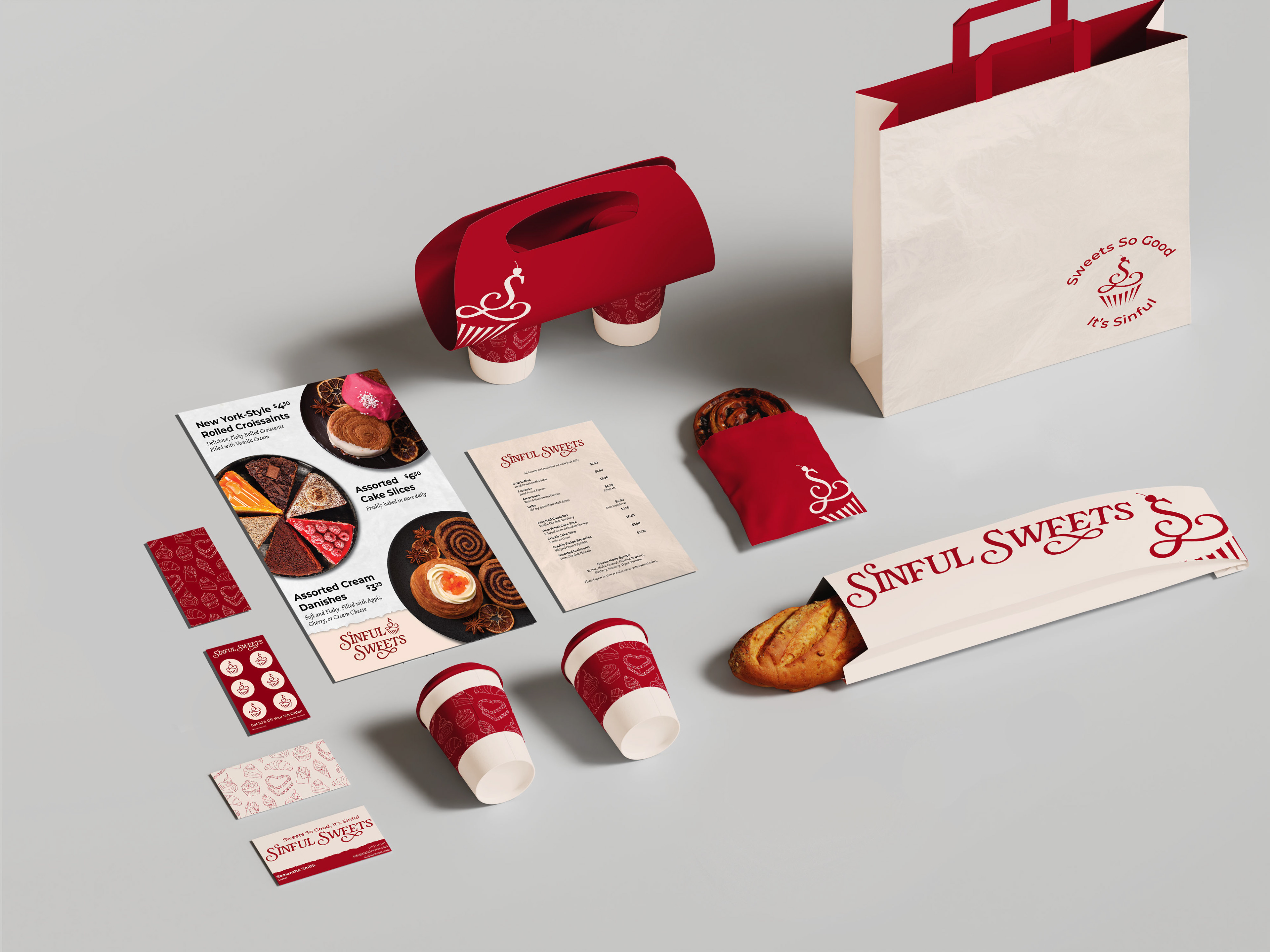 Brand identity exploration for a luxurious, mature and welcoming bakery called Sinful Sweets.